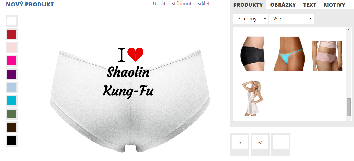 Zároveň tu bola ponuka produktov. V prípade, že by sa mi tričko nepáčilo a chcela by som zvoliť iný strih alebo úplne iný produkt. V takomto prípade však už navrhnutý motív ostane, zmeníte len produkt. Je to veľmi dobré hlavne ak sa človek nevie rozhodnúť medzi dvoma produktmi.